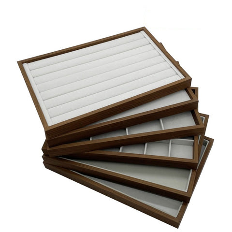 Color: Walnut Wood Frame 8 Ring Showcase Trays