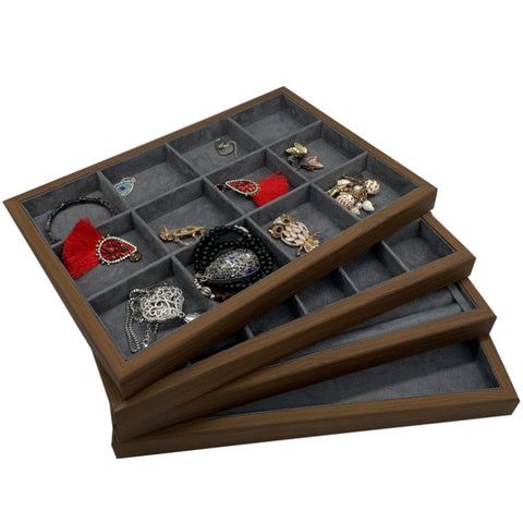 Rosewood Frame 24 Partitions Storage Showcase Trays