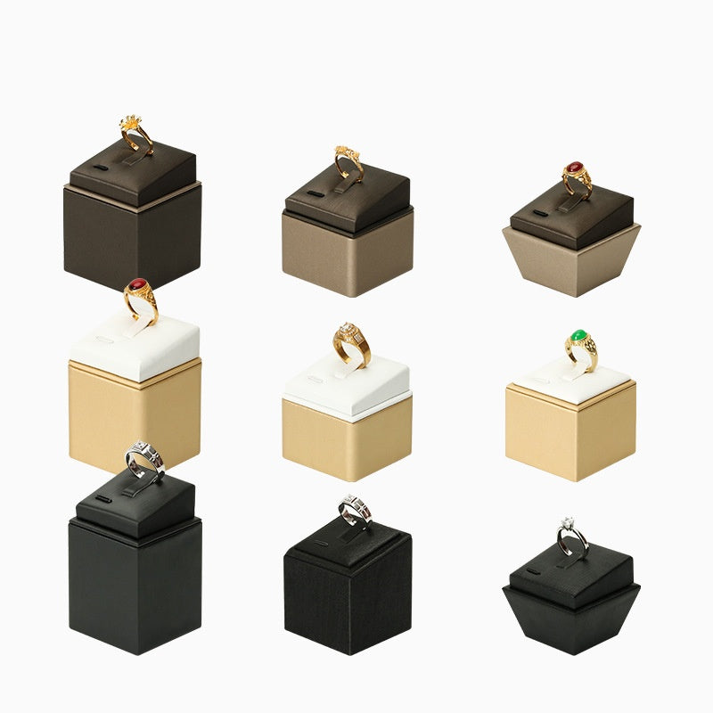 Beige with Brown Brushed Beveled Edge Ring Display Stand