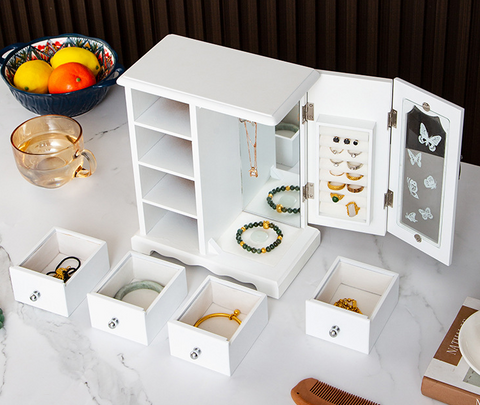 Antique White Cabinet Solid Wood Jewelry Organizer